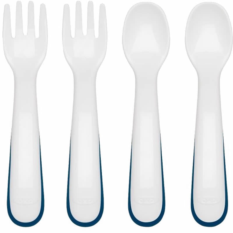 Perfect for toddlers who are just learning to feed themselves, the OXO Tot Fork and Spoon have rounded handles that are easy for little handes to grip. Rounded edges on spoon bowl and fork times provide safety and comfort in case of near misses.