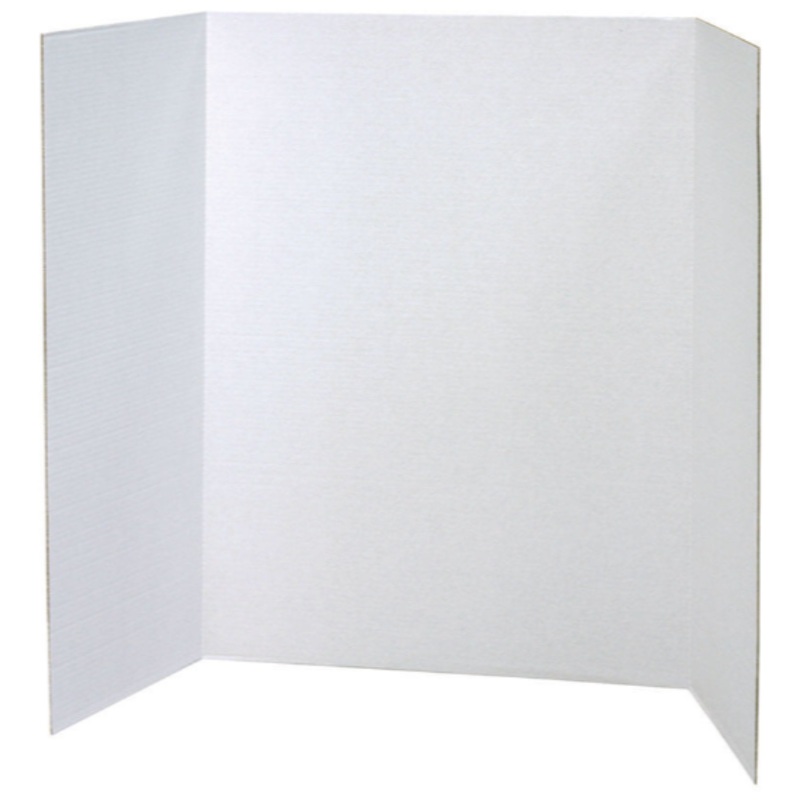 Presentation Boards are tri-fold, single wall corrugated display boards used for projects, booths, science fairs and all types of displays. Each board is colored on the front side and Natural Kraft on the back. Board size is 48″ x 36″ and folds to 24″ x 36″. Recyclable.