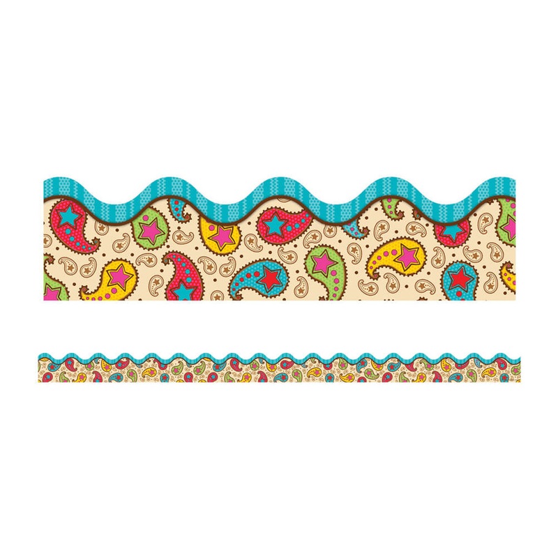 Perfect to use alone or in layers, these scalloped borders come in a pack of thirteen 3 x 2.25 strips for a total length of 39 feet! The strips are great for framing your bulletin boards and windows or for complementing charts and class creations. Borders are available in a variety of colors, styles, sizes, and prints to suit any classroom theme!