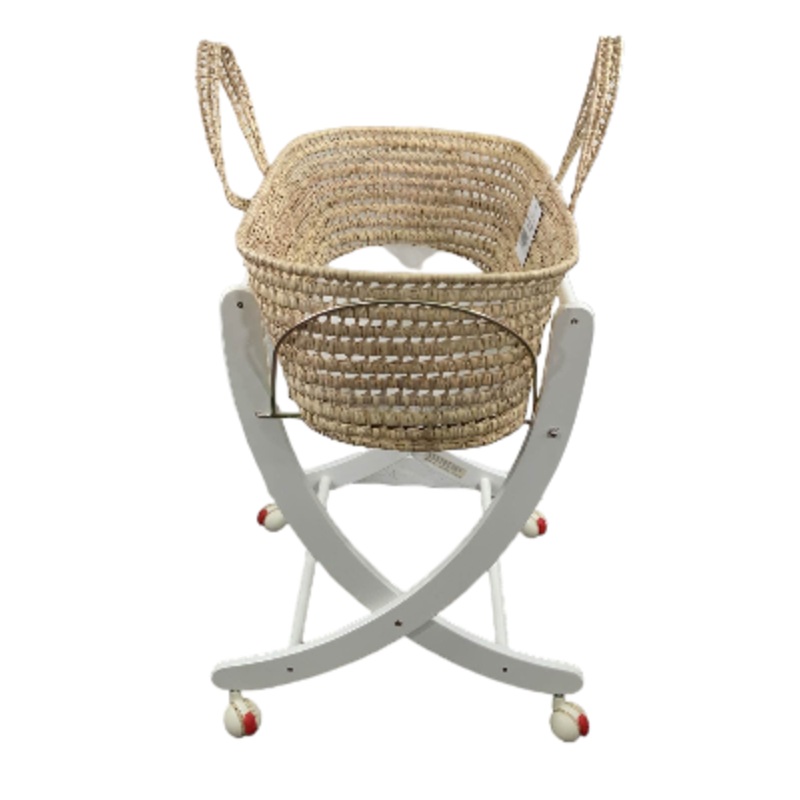 Condition: Gently Used "A stylish wicker Moses basket and stand that you can easily wheel around. "