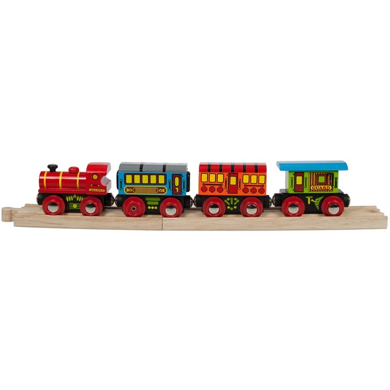This traditional wooden Passenger Train is colourful and ready to transport passengers to their destination. Where is it going?