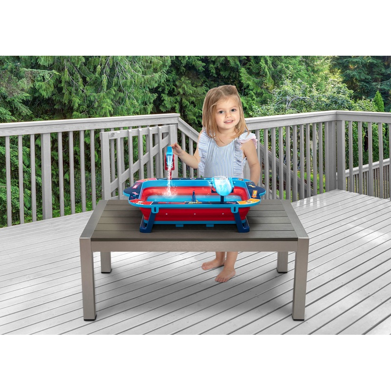 Make a splash anywhere you go with this PAW Patrol Water Activity Table by Delta Children. Designed with folding legs, this portable water table is easy to store or transportuse it in the backyard, the beach or beyond. The tables waterwheel, water slide and underwater spinner will keep kids hands and minds busy for hours, helping improve their fine motor skills, sharing skills and their imagination as they explore all this activity table has to offer. When playtime fun is done, empty the water table with the convenient no-leak drain plug located at the bottom of the basin for easy clean-up and storage! Table is recommended for ages 2 and up.
