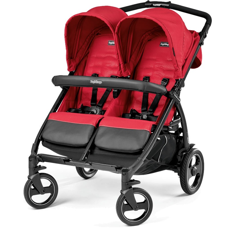 Peg Perego’s most compact side-by-side stroller, at just 29? wide. It can take up to two Primo Viaggio 4-35 car seats and folds easily and inward, like a book!