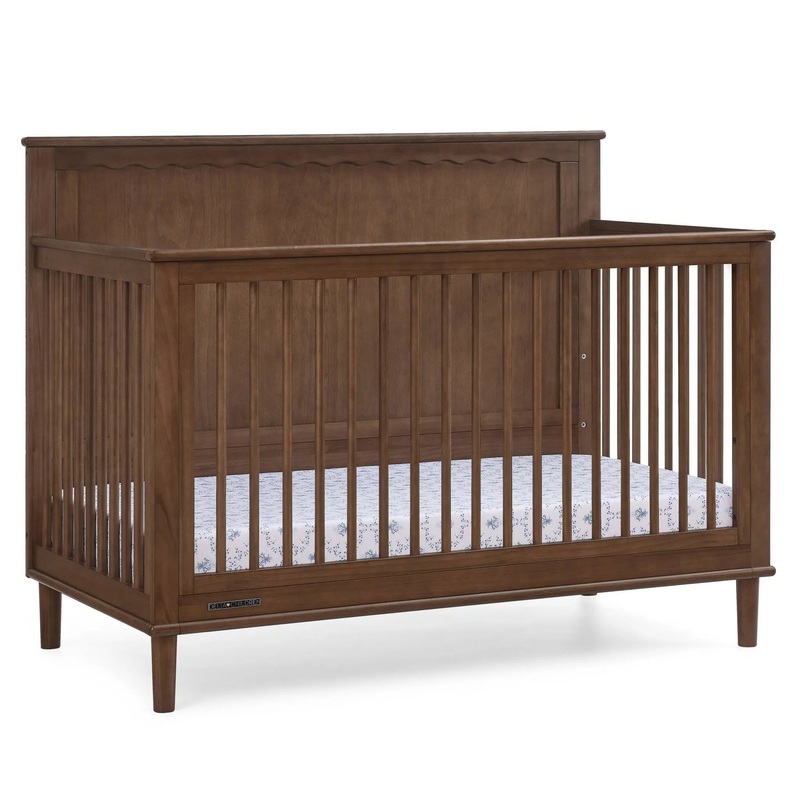 • TIMELESS DESIGN: Adorned with charming, scalloped molding, the Penelope 6-in-1 Convertible Crib by Delta Children adds a sculptural element to your nursery with its elegant “wave” detailing | Available in Acorn and Teak Brown