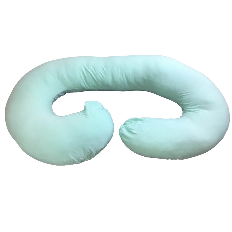 “Pregnancy can be tough on your back and joints, making sleeping hard. Thats where this total body pillow comes in. It features a curve at the top and bottom, perfect for snuggling with and supporting your body. And after the baby comes its a great pillow to throw on the floor and lounge on while playing with your wee one.”