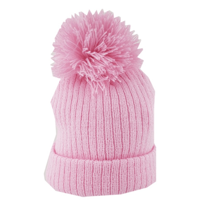 100% Acrylic Knitted hat in Pink with Pom Pom