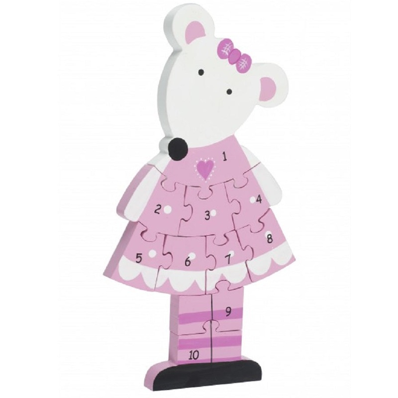 With this beautifully crafted and hand painted wooden pink mouse number puzzle, little ones will be counting from 1 to 10 in no time at all.