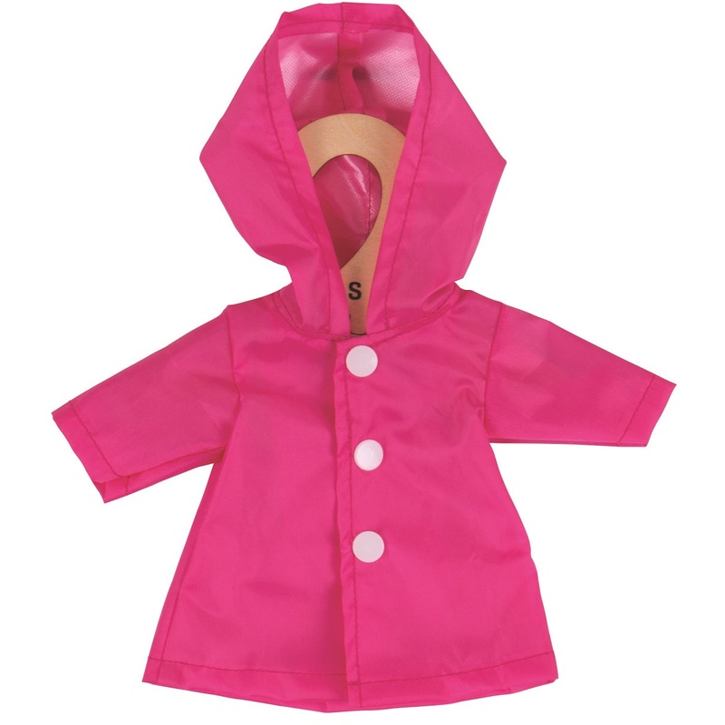 Owners of our 28cm rag dolls will love this Pink Raincoat for dressing up their doll. This practical raincoat is ideal for dressing up on rainy days to keep your doll dry, just like you!