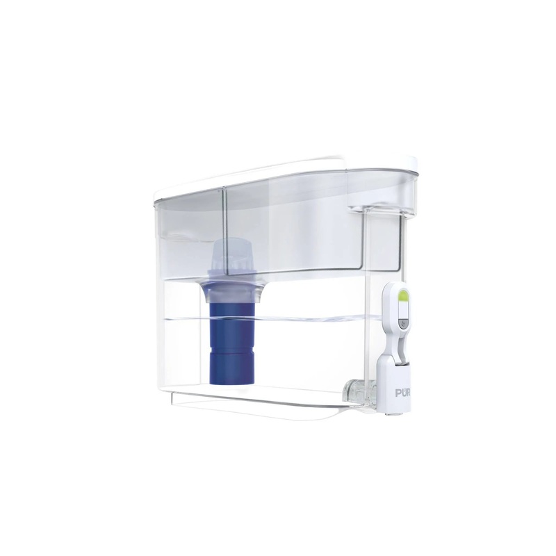 Enjoy better tasting water with the PUR PLUS 30-Cup Water Filter Dispenser in White/Blue, which has been engineered for superior, 3-in-1 powerful water filtration to reduce over 20 chemical & physical substances that tend to cause bad taste and odor in you