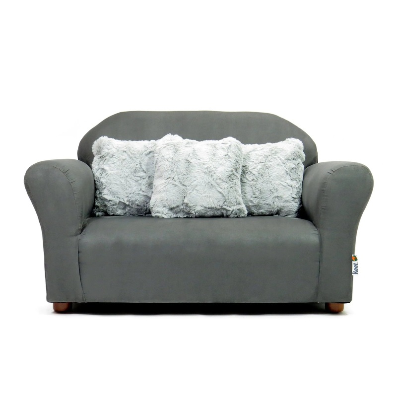 Make you Child feel special with this fabulously cozy Plush Keet Sofa with fluffy accent pillows. Supremely stable constructed with a frame made of sturdy wood, this comfy sofa covered in supportive foam and a rich micro suede fabric, gives your child the best and most comfortable experience. This sofa is not only perfect for playrooms, little ones’ rooms but it will also look great in living rooms and anywhere in your home.