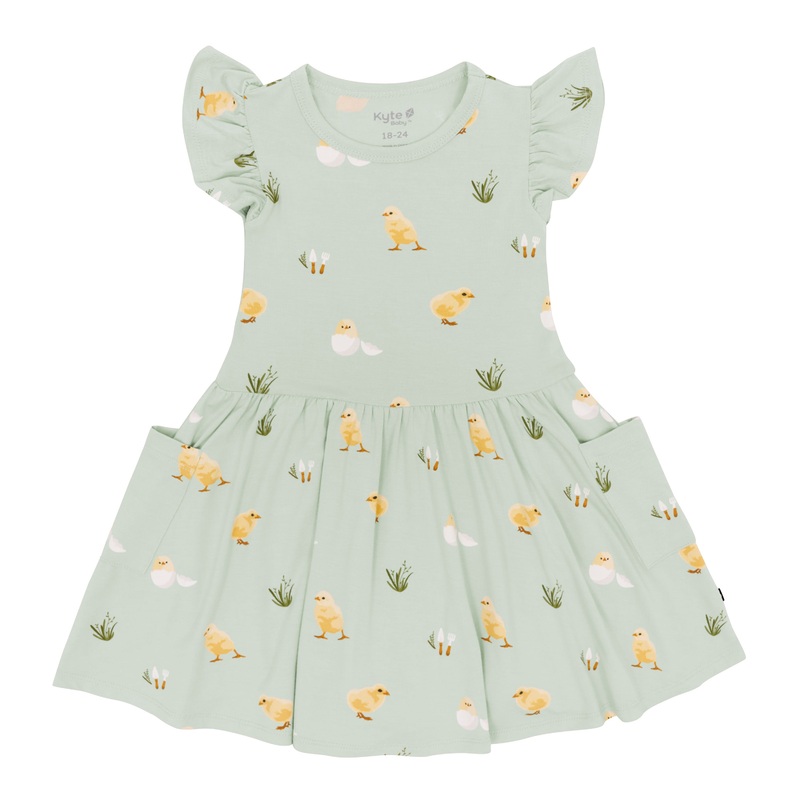 Mix fashion and function with this adorable pocket dress thats made for all-day play. Ruffle cap sleeves add a little flair for fun, while side pockets hold whatever treasures your little one finds on their adventures. Crafted from breathable bamboo, this knee-length dress keeps active kiddos cool and comfortable all summer long.