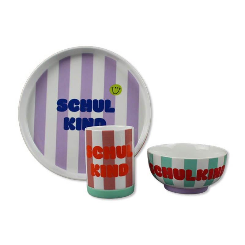 Be the first to review “Porzellanset Schulkind Streifen flieder/pink”