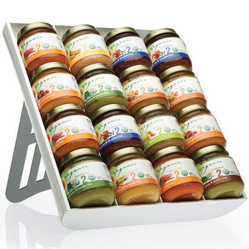So organized, so versatile…we’ve never seen a baby food organizer that offers so many options! Stand it up on a counter or shelf, or even lay it flat in a drawer. No matter how you use it, it neatly holds up to 16 jars of baby food. Includes removable divider that’s ideal for holding baby’s feeding utensils. Lives on long beyond baby food: use it to store spices, silverware, or up to 8 lbs. of stuff! 11″L x 10″W x 2″H.