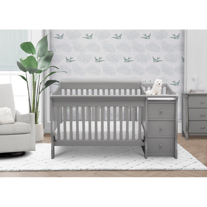 Fashion a nursery youll love with the Princeton Junction Crib N Changer. The cribs slightly curved sleigh-style headboard and convenient crib and changer combo marries style and function. Designed to adapt to all your childs sleeping needs, the crib easily converts into a toddler bed, daybed and full size bed when your little one is ready.