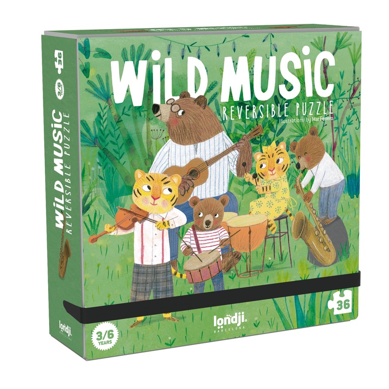 Mit dem liebevoll illustrierten Puzzle 'Wild Music' von Londji grnden die Kleinsten ihre erste Band, die so richtig wild klingt. Ein 36-teiligesWende-Puzzle, das zwei Szenen zeigt: Eine Tigerfamilie und eine Brenfamilie, die Musik spielt. Ein ideales Puzzl