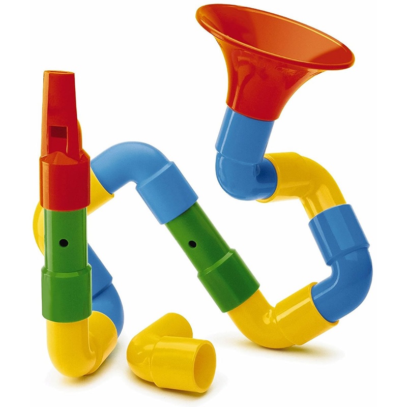 With Saxoflute your kids will love assembling their own music instruments and then actually make music with them. By connecting the colorful tubes kids can create any kind of horn instrument they can imagine, or they can copy real instruments: trumpets, flutes, saxophones… and really play them to compose their own fun and happy music. All pieces are non-toxic and unbreakable to guarantee hours of creative and safe play. Ages 2+ years.