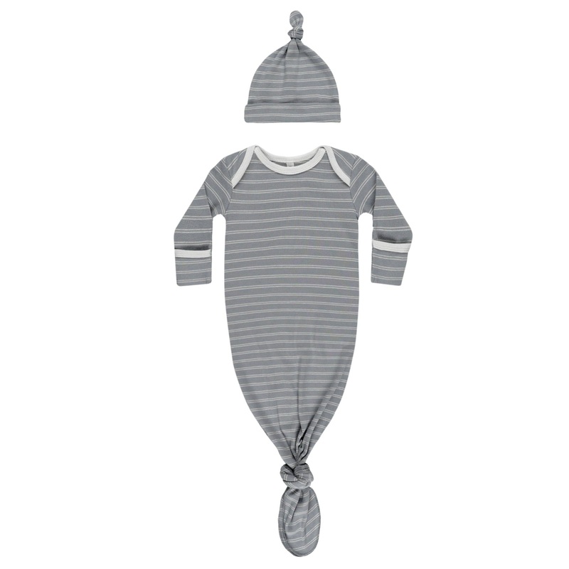 Knotted baby gown paired with our knotted baby hat in our stretchy rib knit with foldover hand mitts.Care: Machine wash cold. Tumble dry low.Made of 95% Organic Cotton, 5% Elastane