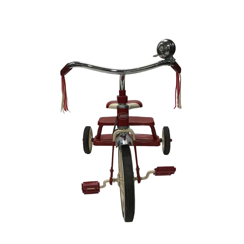 The classic red tricycle thats been inspiring childhood adventure for over 100 years! Built to last with a durable steel frame, spoked wheels, and rubber tires. The handle bar streamers and ringing bell add an extra touch of fun, and the adjustable seat grows with your child for years of enjoyment. Designed for children ages 24 months to 4 years old.