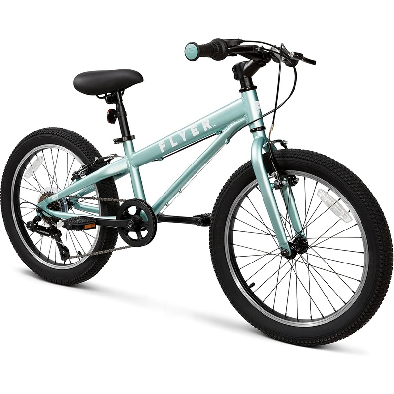 Discover the perfect first bike for your child. Built with a lightweight and durable aluminum frame, thick 20″ tires, and premium components, this bike offers a smooth and stable riding experience. Featuring an adjustable padded seat and kid-specific geometry, it’s designed to grow with your child and provide easy handling. Plus, with front and rear linear pull brakes and a Shimano 7-speed gear shifter, it’s suitable for riders 45″-52″ tall and recommended for kids ages 6-8 years. Get your child riding with confidence and comfort today!