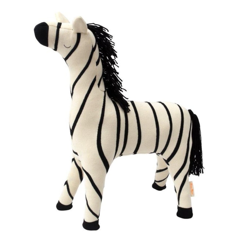 Little ones will love to play with and cuddle Ray the zebra. Beautifully crafted from soft organic knitted cotton, with sweet embroidered features and a flowing yarn mane and tail.