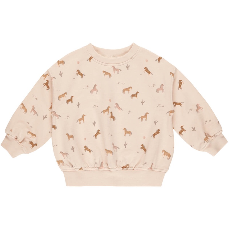 Relaxed Sweatshirt in Horses by Rylee & Cru. A comfortable and cosy sweater in all over horse print.Colour - Natural.60% Cotton, 40% Polyester.Product code RC452MOSY