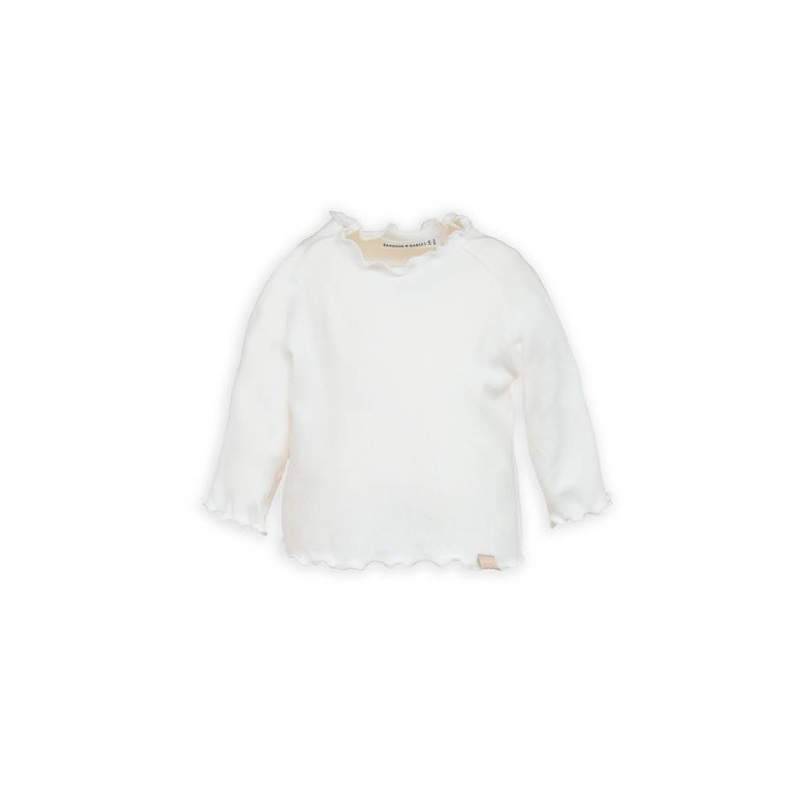 Lightweight and gentle on the skin, this ribbed long-sleeved shirt is perfect for little girls who desire freedom of movement and softness.