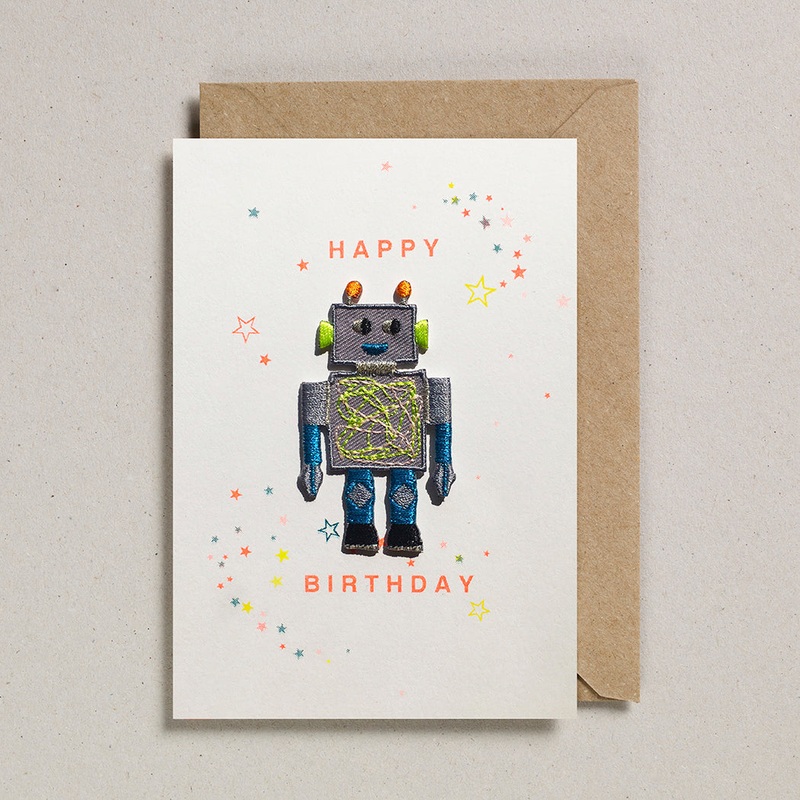 Embellished with an embroidered patch that can be removed and ironed onto clothing. Blank inside for your own message.