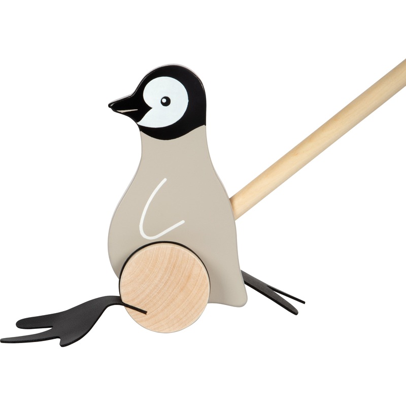 Mit dem Pinguin die Welt erkunden! Dieses niedliche Pinguinbaby zum Schieben aus Holz ist der ideale Begleiter fr kleine Laufanfnger bei ihren ersten Schritten.Dabei verfgt das Schiebetier ber Watschel-Fe, die beim Gehen lustige Gerusche machen und Kinder spielerisch zum Laufen lernen animieren. Mit gummierten Rdern fr ein bodenschonendes und geruscharmes Vorwrtskommen des Pinguins.Ein amsierendes Holzspielzeug fr die Kleinen und ein treuer Begleiter auf jedem Spaziergang! Mit fr Kinderhnde gut zu greifendem Griff und in der Mitte teilbarem Schiebestab.Der niedliche Watschel-Pinguin berzeugt durch die liebevolle, kindgerechte Gestaltung.Artikel: 12494Altersempfehlung: 18+ MonateMae: 13 x 6 x 64 cm, kleine Variante ca. 13 x 6 x 37 cm