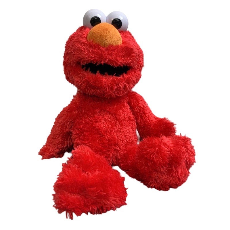 “This mini plush Elmo, a beloved Sesame Street character is perfect to take on the go. He will giggle out loud when my oh squeeze his tummy, featuring 6 phrases and laughs.”