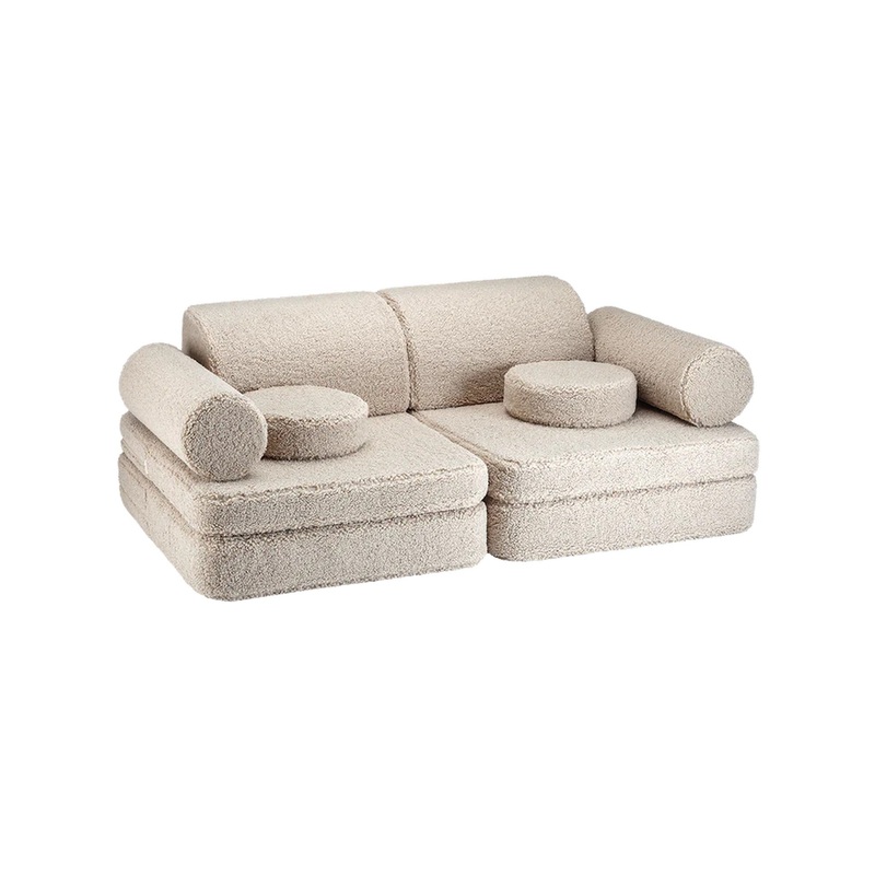 Settee von Wigiwama ist ein vielseitiges und gemtliches Mbelstck, das speziell fr Kinder entwickelt wurde. Mit seinem einzigartigen Design und seiner hochwertigen Verarbeitung bietet es eine sichere Umgebung zum Spielen, Ausruhen und Entspannen.Das Sofa besteht aus insgesamt 9 Teilen, darunter zwei Sitzkissen, ein groes Sitzkissen, zwei dreieckige Kissen als Rckenlehnen, zwei Rollkissen als Armlehnen und zwei runde Kissen. Diese Kombination ermglicht unbegrenzte Mglichkeiten fr fantasievolles Spielen und kreativen Ausdruck.Die uere Hlle des besteht aus OEKO-TEX zertifiziertem Teddy-Stoff, der nicht nur kuschelig weich ist, sondern auch schadstofffrei und hautfreundlich. Die Fllung besteht aus ISO-zertifiziertem Polyurethanschaum, der fr eine angenehme Sitz- und Liegeflche sorgt.Mit einer Gre von 132 cm Lnge, 78 cm Breite und 46 cm Hhe bietet das Sofa ausreichend Platz fr Kinder jeden Alters. Der Bezug kann dank der Reiverschlussffnung leicht entfernt und gem den Waschanleitungen gereinigt werden, was fr eine hygienische Nutzung sorgt.Settee wird lokal in Lettland hergestellt, wobei auf eine umweltfreundliche Produktion geachtet wird. Durch die Verwendung von hochwertigen Materialien und die sorgfltige Verarbeitung ist dieses Sofa nicht nur langlebig, sondern auch nachhaltig.Mit dem Settee holen Sie sich ein Mbelstck ins Haus, das nicht nur funktional ist, sondern auch die Fantasie und Kreativitt Ihres Kindes frdert. Egal ob zum Spielen, Lesen, Entspannen oder Trumen – dieses Sofa sollte in keinem Kinderzimmer fehlen.