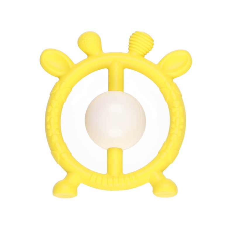 This giraffe toy isa silicone baby teething rattle and sensory teether toy, easy to hold a rattle just the right size for your baby’s little hands. Shaking the rattle bell sound promotes the babys hearing development and motor skills.