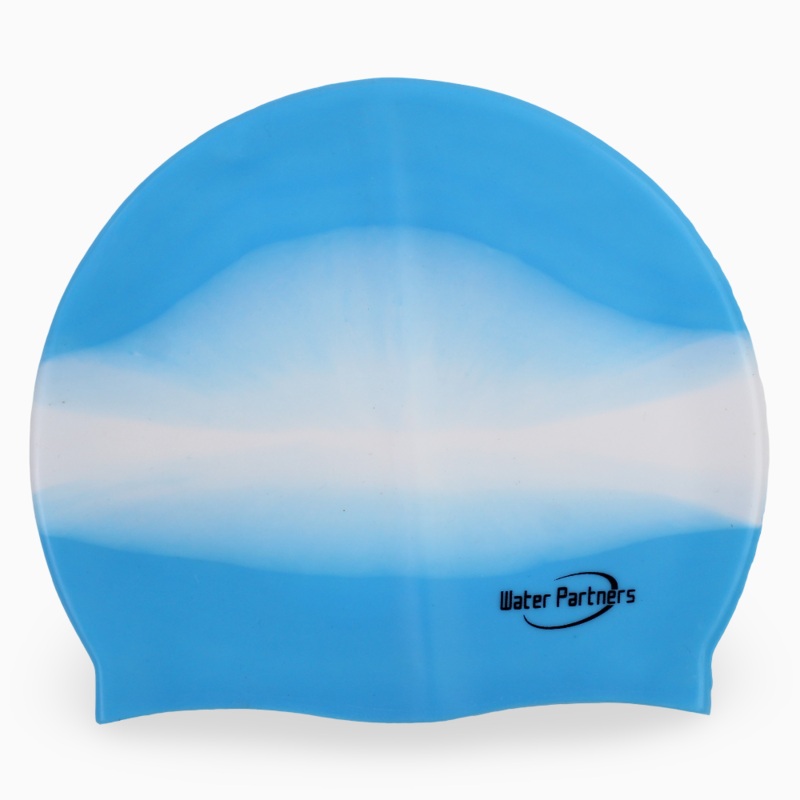 Gentle on hair and full of charm, this light blue and white cap is a poolside essential.