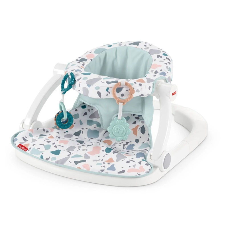 The soft fabrics and wide base of this infant chair help support your baby as you sit them up to interact with the world around them (and those two adorable toys!). And the best part? It folds flat, making it easy to store or take with you as you travel!