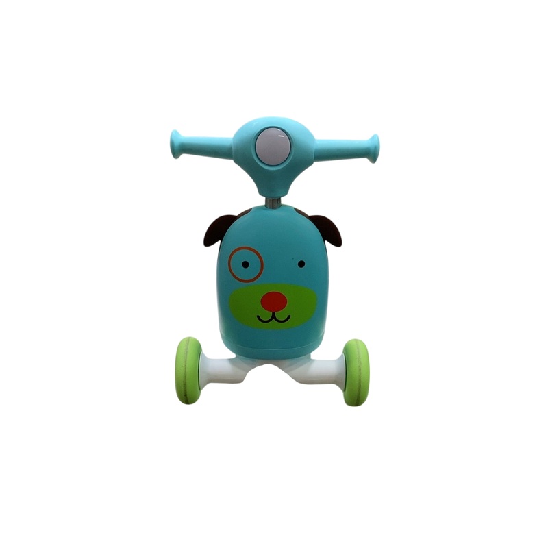 This adorable ride-on toy is perfect for hours of play. Your little one will enjoy riding it, or using it as a wagon to pull around their toys. As your baby grows into a toddler, this toy will grow with them turning into a scooter! Also plays melodies, and sound effects for your child to enjoy.