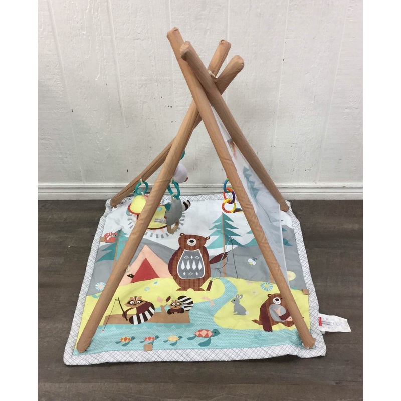 “Like a secret fort in the forest, this activity gym is full of wonder and adventure for your little scout. Created to help your baby reach milestones, the cozy play mat and animal friends provide plenty of sensory activities to keep your little one engaged.”