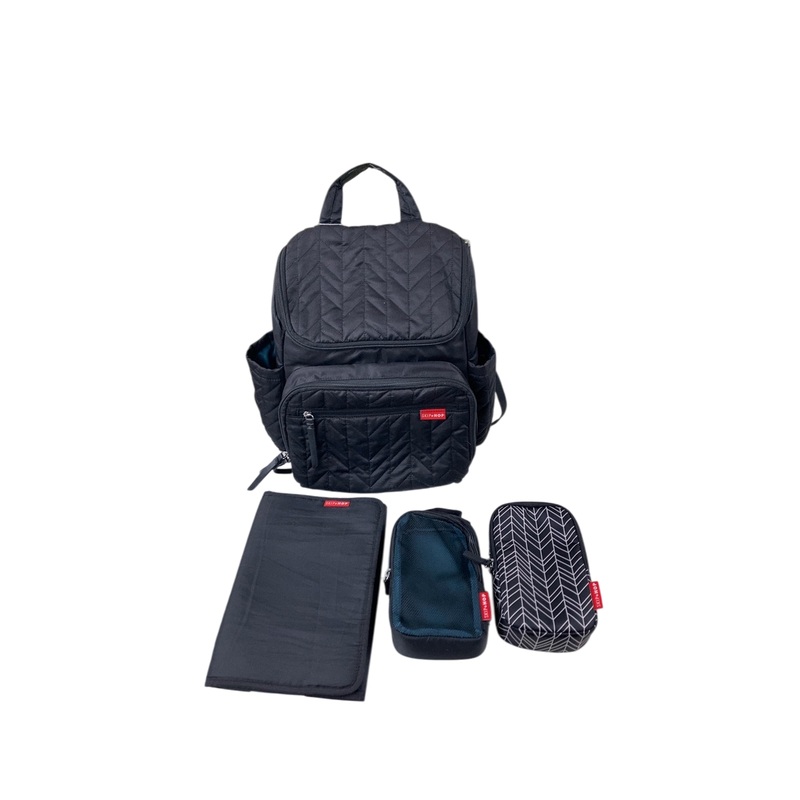 Condition: Gently Used Spacious diaper bag that can keep all your items organized and easy to find. Several small outer pockets, two packing cubes, and a nice quilted fabric. This diaper bag will conveniently hold everything you need.