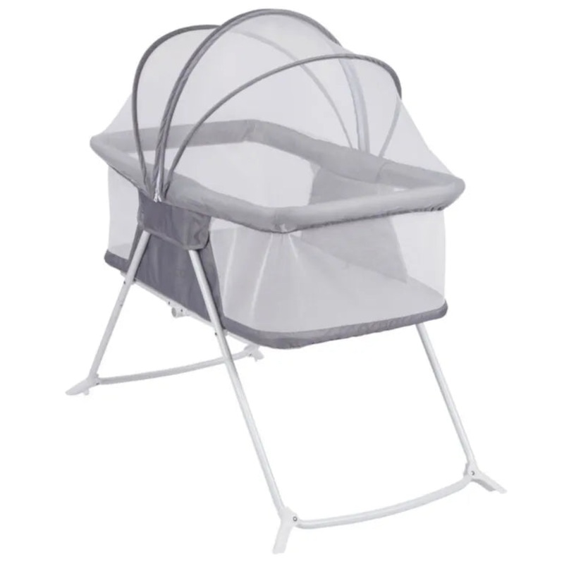 The Cosco Sleep Spot Bassinet is the perfect naptime travel buddy. Its breathable mesh canopy provides extra protection outdoors for your little one, and it gives you a chance to easily look in and see your baby sleeping soundly. On cool, cloudy days, when the canopy isnt necessary, it can quickly be removed. If your child is having trouble drifting off to sleep, the little kickstands turn in on each corner, so you can gently rock your baby to sleep.
