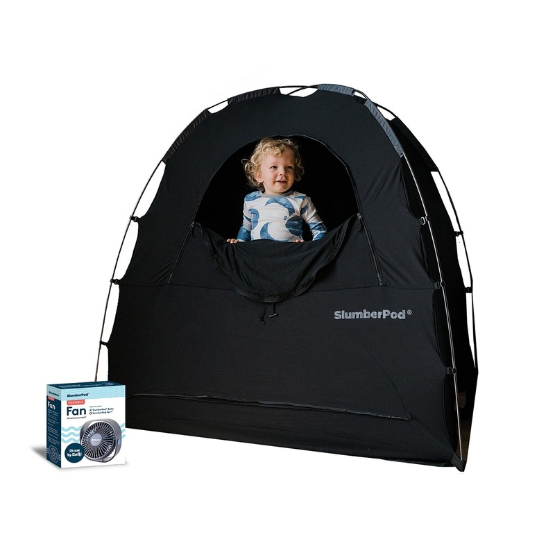 The SlumberPod is the first portable, privacy sleep nook that allows babies to sleep in their playard, mini crib, or toddler cot with room to sit up or stand up inside, solving the problem of getting a good nights sleep while sharing a room with your little one.