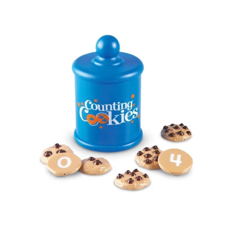 A delicious way to learn! Children learn to recognize, count and compare numbers with soft, plastic Counting cookies(TM). Cookies are numbered 0-10 on one side and the corresponding number of chocolate chips on the opposite side. Children can also engage their fine motor skills and hand eye coordination by picking up the cookie, removing the lid and placing it inside the jar.