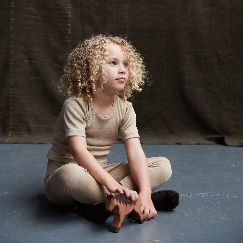 Wool and Silk are great all year round. In the winter it can be worn as a thermal base layer and on warmer days on its own. Wool and Silk are also perfect for sleeping in. Wool helps regulate the body temperature. It can absorb much more liquid than cotton, keeping your little one dry.