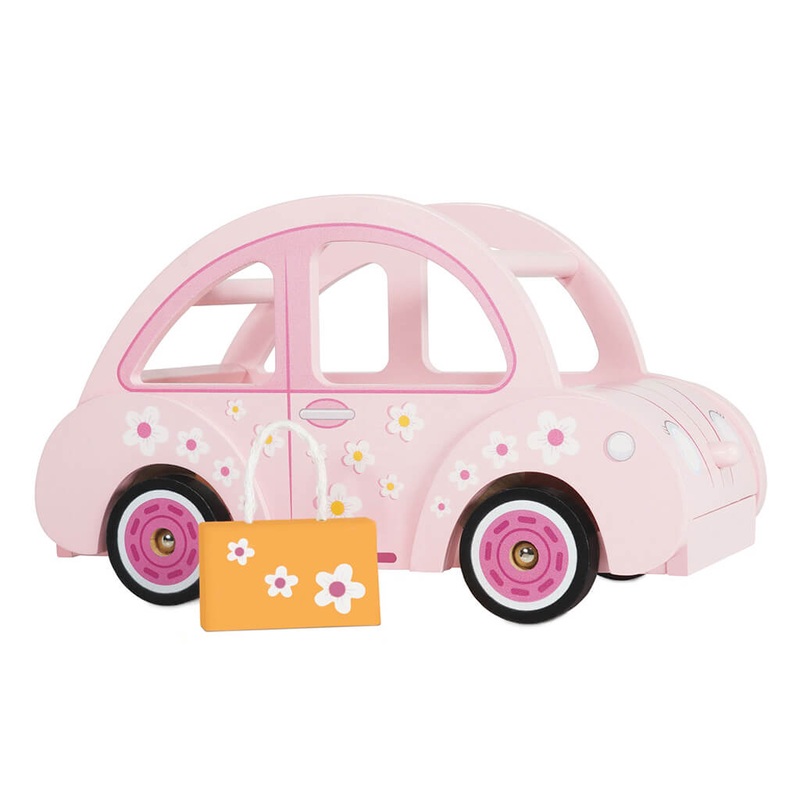A pretty pink wooden car scaled for Le Toy Van dolls. Includes stylish matching luggage!