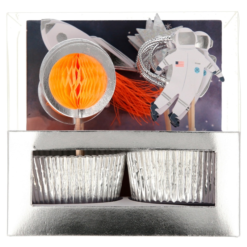 Kreieren Sie mit diesem Cupcake-Set auergewhnliche Cupcakes fr eine Party rund um das Thema Weltraum.Es enthlt glnzende Cupcake-Frmchen mit Silberfolie und die Topper verfgen ber eine Reihe von Verzierungen, die groartig aussehen und sich toll anfhlen. Die Raketenaufstze haben neonkorallenfarbene Fadendetails Astronauten-Topper mit glnzenden silbermetallischen Rundkordeln Planetenaufstze haben neonorangefarbene Wabenmitten Sternaufstze haben einen silbernen holografischen Folieneffekt Glnzende Cupcake-Frmchen mit Silberfolie Cocktailspiee aus Holz Einfache Selbstmontage erforderlich Verpackung aus nachhaltigem FSC-Papier Packung mit 24 Toppern in 4 Designs Verpackungsmae: 64 x 32 x 64 mm Modell: 218665