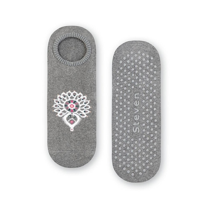 Steven Women’s Gray Anti-Slip Socks with Folk Pattern | ART-132ZG026