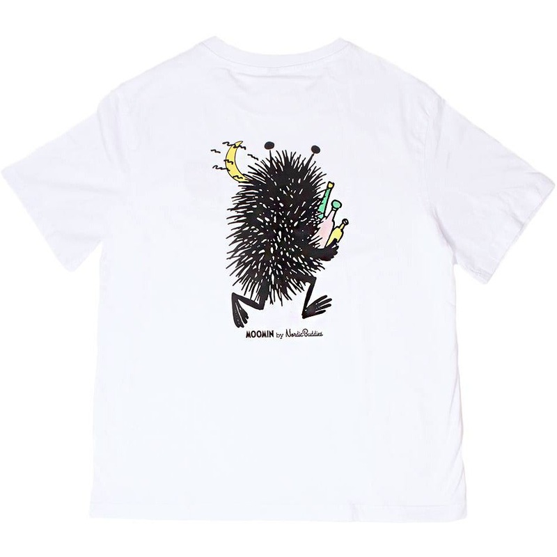 Nordicbuddies has created a stunning new collection for the upcoming spring and summer of 2023, with curiosity as the core inspiration. The collection breaks boundaries with curious colours, styles and designs, and it includes hoodies, t-shirts, ankle socks and brand-new hats and waist bags. This cool white t-shirt features a small print of Stinky carrying bottles in his hand on the front and a large picture on the back. Try new styles and have a little fun with these unique pieces of clothing!