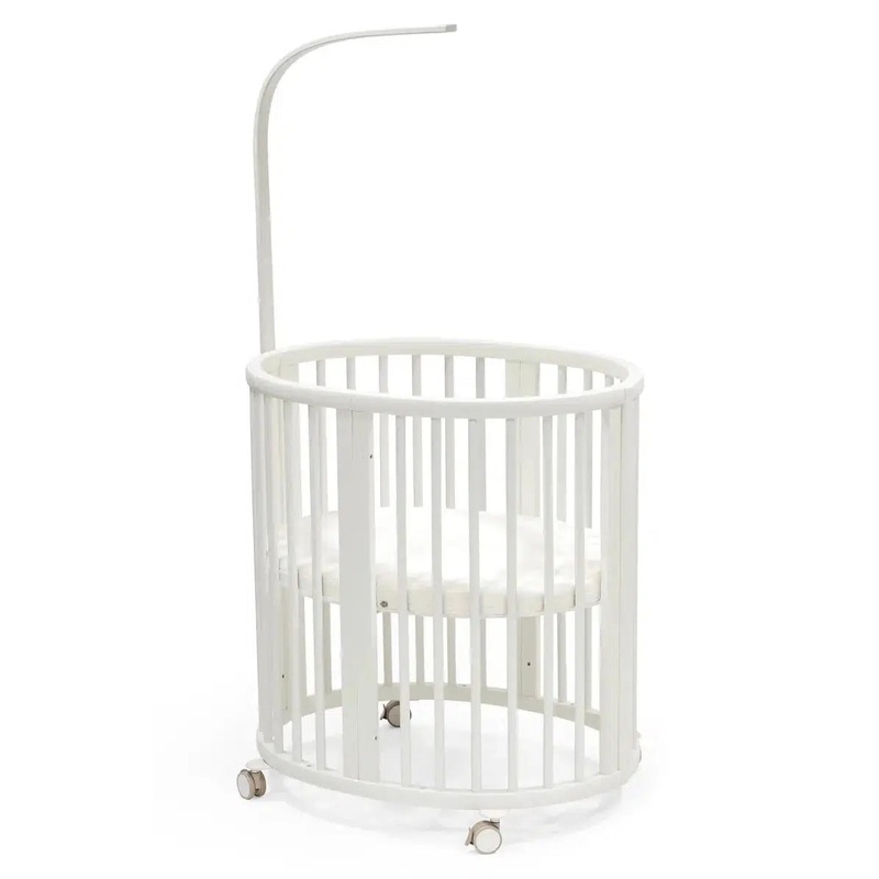 The Stokke Sleepi Mini is the ideal first bed for your newborn. Creating a nest-like environment, it helps baby feel snug and secure. Soft oval design cocoons your baby offering comfort and familiarity for restful sleep and the sweetest of dreams. The drape rod and canopy makeit a truly elegant addition to any nursery. Lockable swivel wheels can be used to rock your baby gently to sleep and makes your crib easy to move from room to room. At only 67 cm / 26,4 in inches wide, its amazingly space efficient, making it ideal for petite nurseries. The Stokke Sleepi concept has been developed with sound sleep and safety in mind. It is available with a new firm and breathable Sleepi mattress which exceeds the highest safety standards. Accessorize with the breathable mesh liner and high-quality textiles.