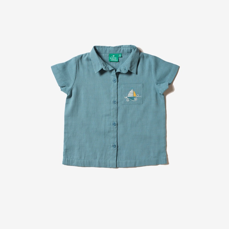 Loose fitting style in summery, soft double cloth fabric. Comes with a delicate sailing boat embroidery on the front pocket that little seafarers will love!100% GOTS & fairtradedouble cloth cotton