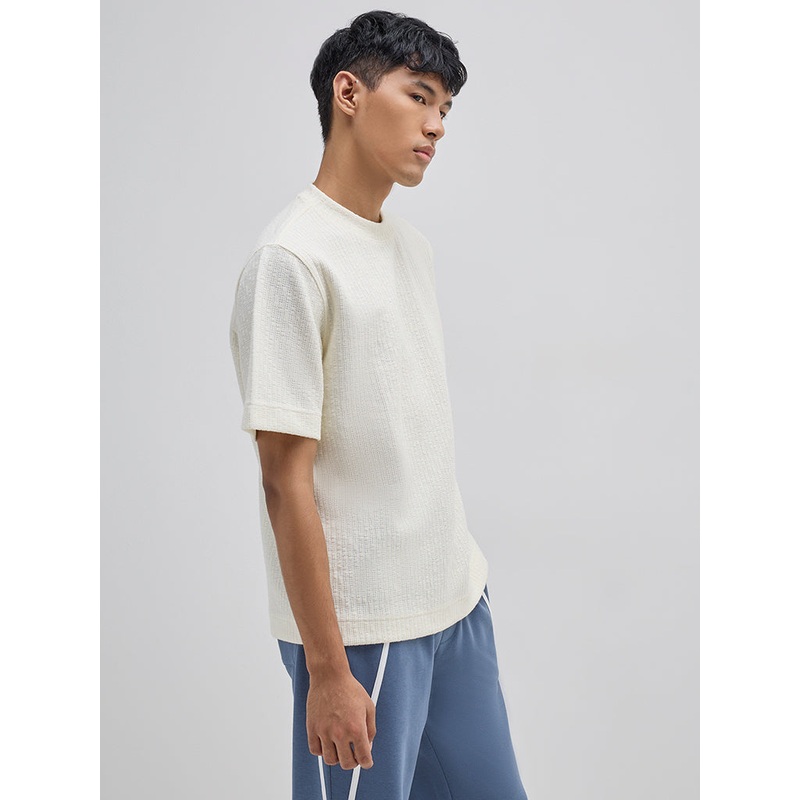 This off white t-shirt from Studiofit is carved in a relaxed silhouette for easy comfort. Made from a knit-textured fabric, it is complemented by a crewneck and short sleeves.