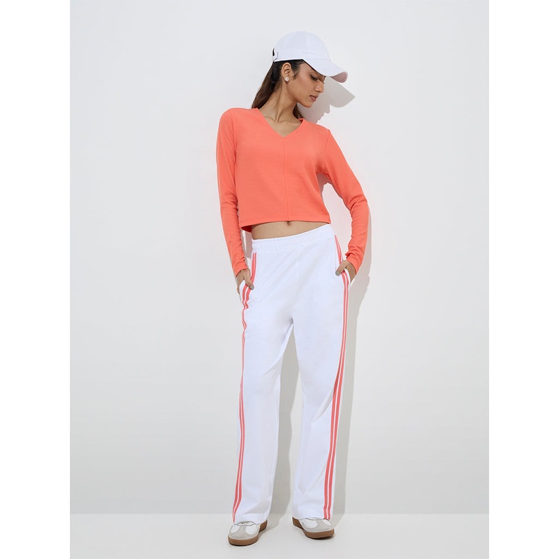 This orange top from Studiofit blends comfort with sporty flair. Constructed from a sumptuous ribbed-textured fabric, it features a flattering V-neck and full sleeves for a sleek finish.