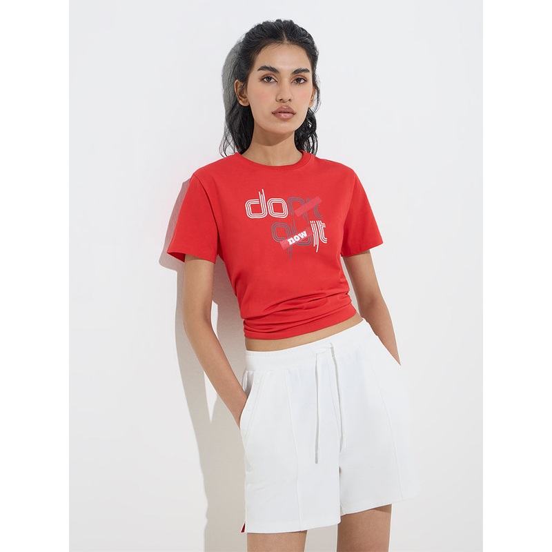 Crafted from a soft cotton-blend fabric, this red t-shirt from Studiofit features bold text detailing at the front. Designed for everyday comfort, it is finished with a classic crew neck and short sleeves.