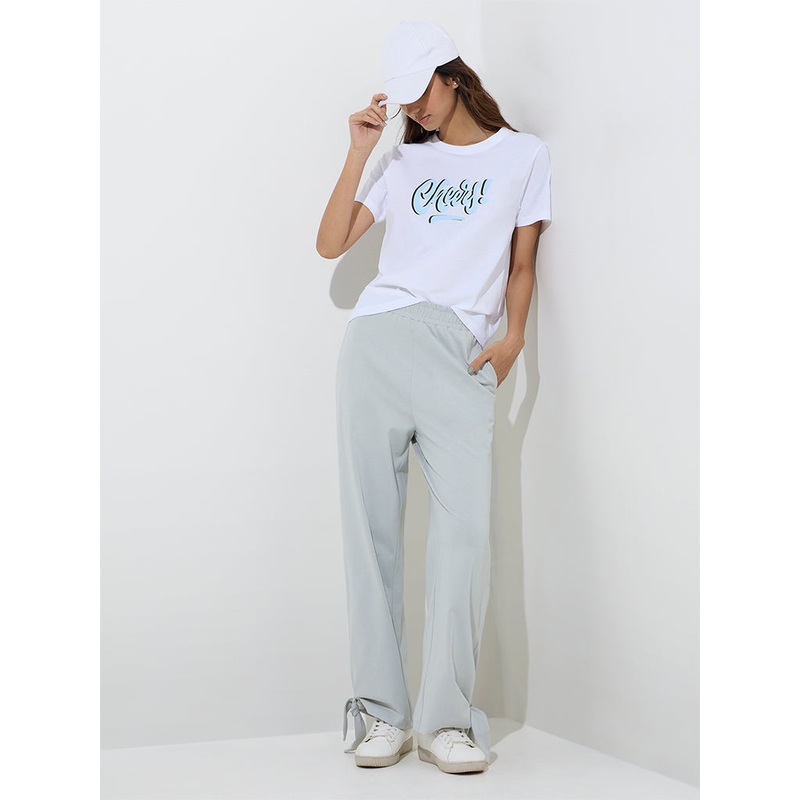 Studiofit brings a laid-back vibe to your wardrobe with this white t-shirt, styled with a bold text print. Made from pure-cotton, its finished with a ribbed round neck and half sleeves for everyday ease.